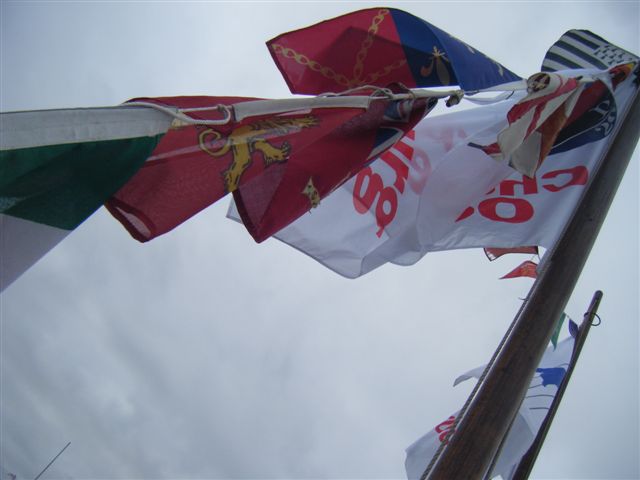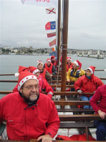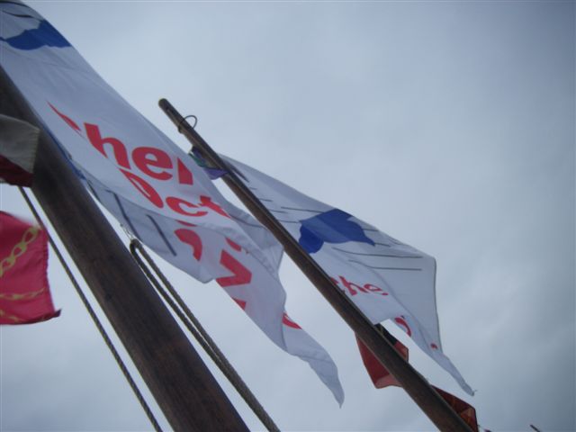 Départ sous grand Pavois... puis retour au ponton pour embarquer les retardataires...