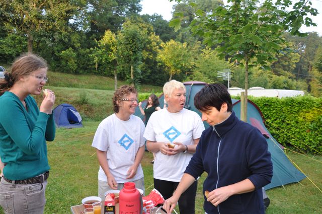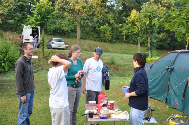 Petit déjeuner à 7h sur les tables, les pieds dans la rosée. La journée s'annonce très ensoleillée.