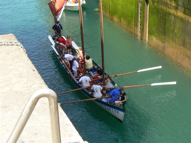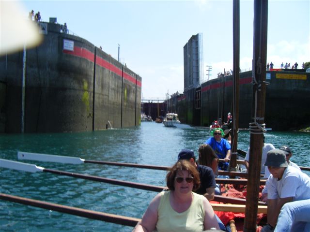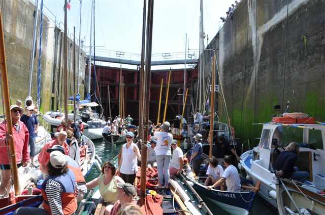 Nous attendons l'éclusage et faisons ensuite route à l'aviron vers l'île de Cézembre.