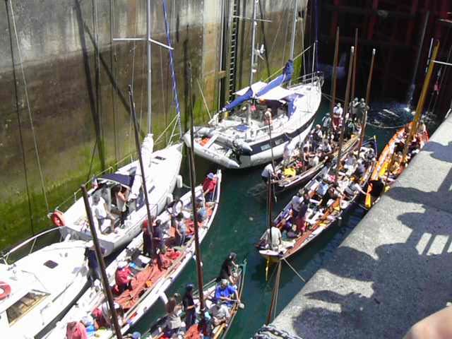 N'écoutant que nos estomacs, nous avons mangé dans la yole en regardant les autres équipages oeuvrer.