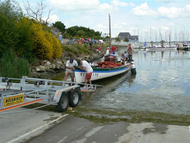 Retour à la cale pour la sortie de l'eau. Mise sur remorque et retour à Cherbourg sur le parking du club.