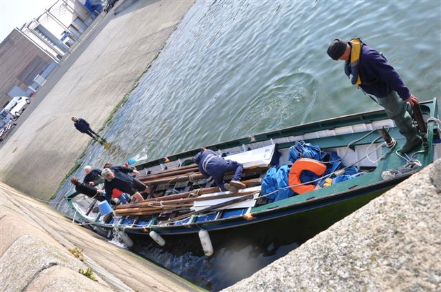 Pendant que 6 ramaient (dure la reprise, surtout contre le vent) 2 écopaient !!!